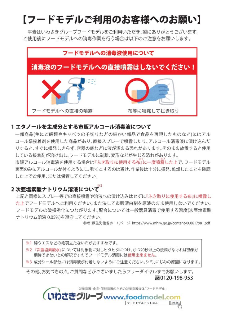 フードモデルの消毒作業には本文をよくお読みの上実施ください。