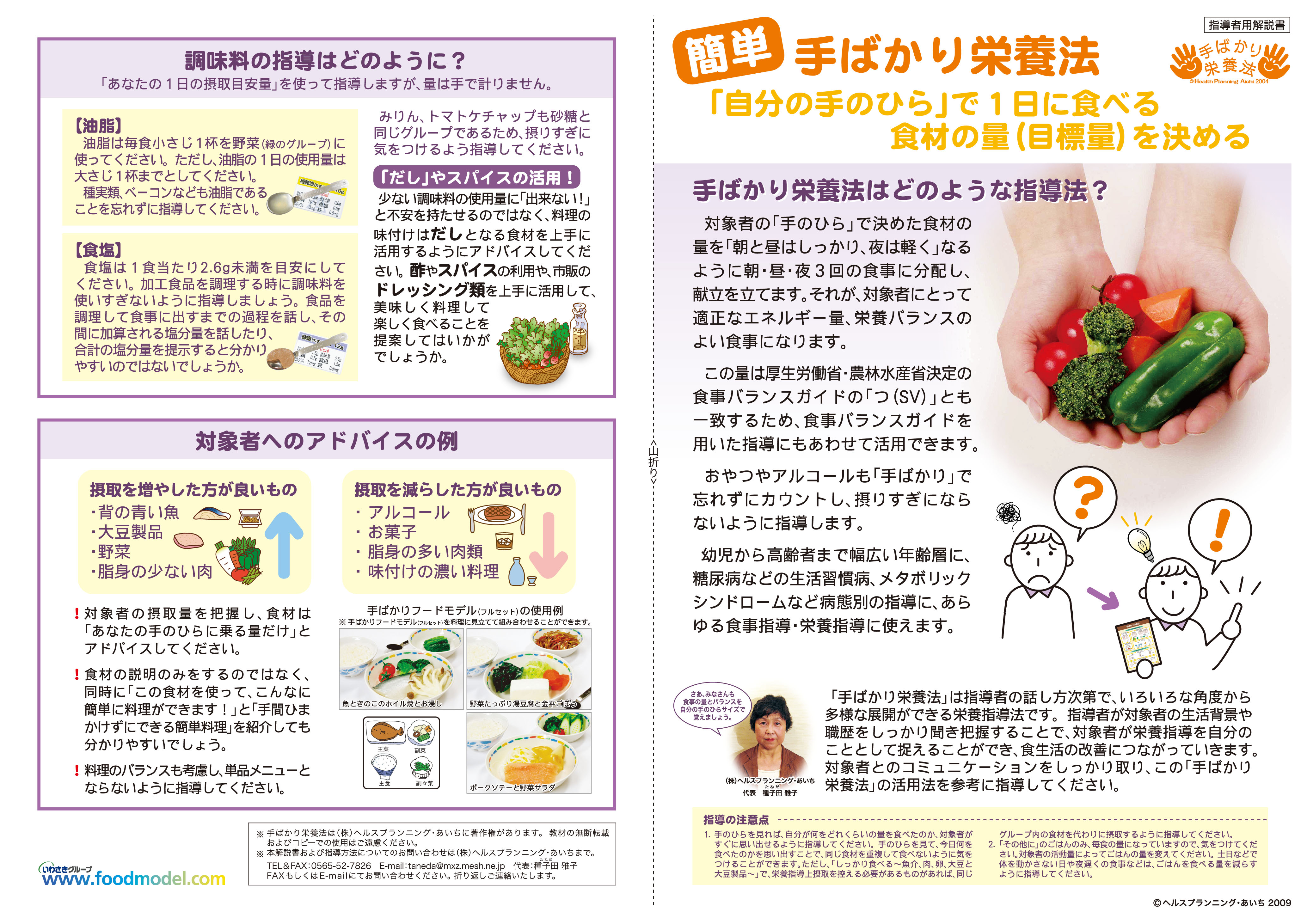 指導者研修会等での参考資料として…、手ばかり指導シートやフードモデルの実践での 活用の一例として…、様々にご活用いただけます。