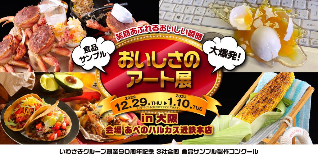 いわさきグループでは創業90周年を記念しまして、初めてグループ三社(株式会社いわさき・イワサキビーアイ・岩崎模型製造株式会社)合同での食品サンプル製作員技術コンペを開催、優秀作品の展示会「美味しさのアート展」開催します。